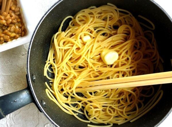 在宅勤務ランチ 納豆卵しらすパスタ 櫻田こずえの食卓